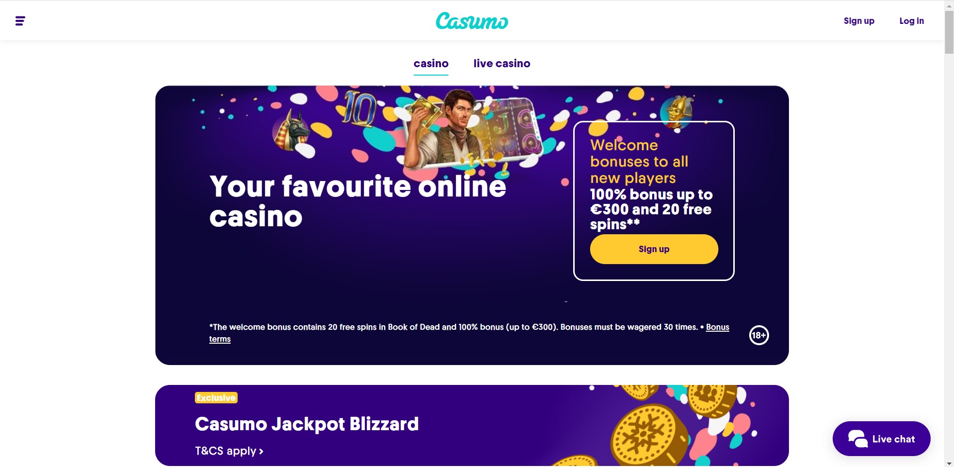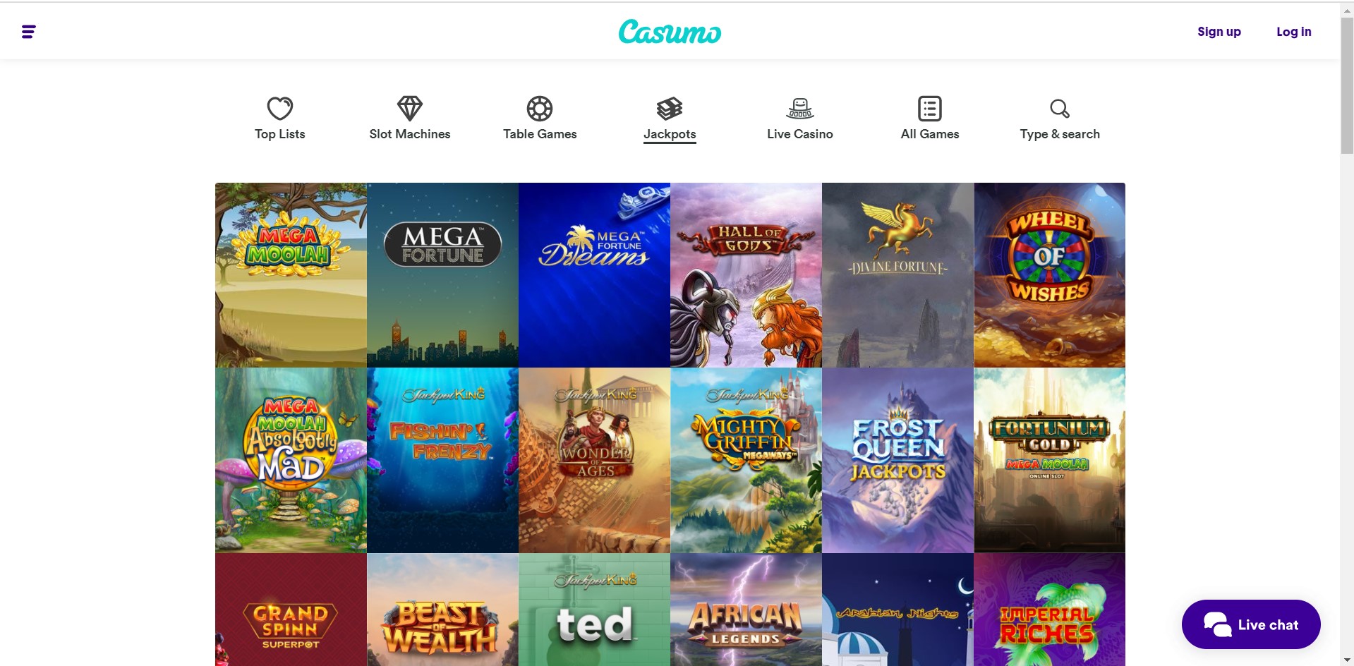 Casino Casumo har många olika spel, turneringar och spelautomater från olika utvecklare. Du kan använda sökfunktionen längst upp på sidan om du redan vet vilket spel du är sugen på, men det finns andra sätt att hitta rätt. De olika kategorierna som finns på hemsidan hjälper dig som vill spela att hitta rätt i djungeln av alternativ som möter dig. De olika kategorierna för spel är Topplistor, Spelautomater, Bordsspel, Jackpots, Live Casino, och Alla spel. För dig som speciellt gillar spelautomater, som även kallas slots, finns exempelvis Tales of Dr. Dolittle, Extra Chilli Megaways, Bonanza Megaways, eller Starburst att välja på. Bordsspel, så kallade turneringar, innehåller bland anna olika varianter av Roulette pro, Blackjack, Texas Hold’em och Baccarat. Nästa kategori spel listar högsta jackpottarna på upp till 17M kr som finns i spel som Mega fortune, Divine Fortune, Bruno Bingo och Classic Fortune. Live Casino som nämns är spel som Topwheel Treasures, Live Roulette, Lightning och Football Studio. Det gäller att kolla upp med omsättningskravet innan du börjar spela då vissa spel inte räknas in över huvud taget där.