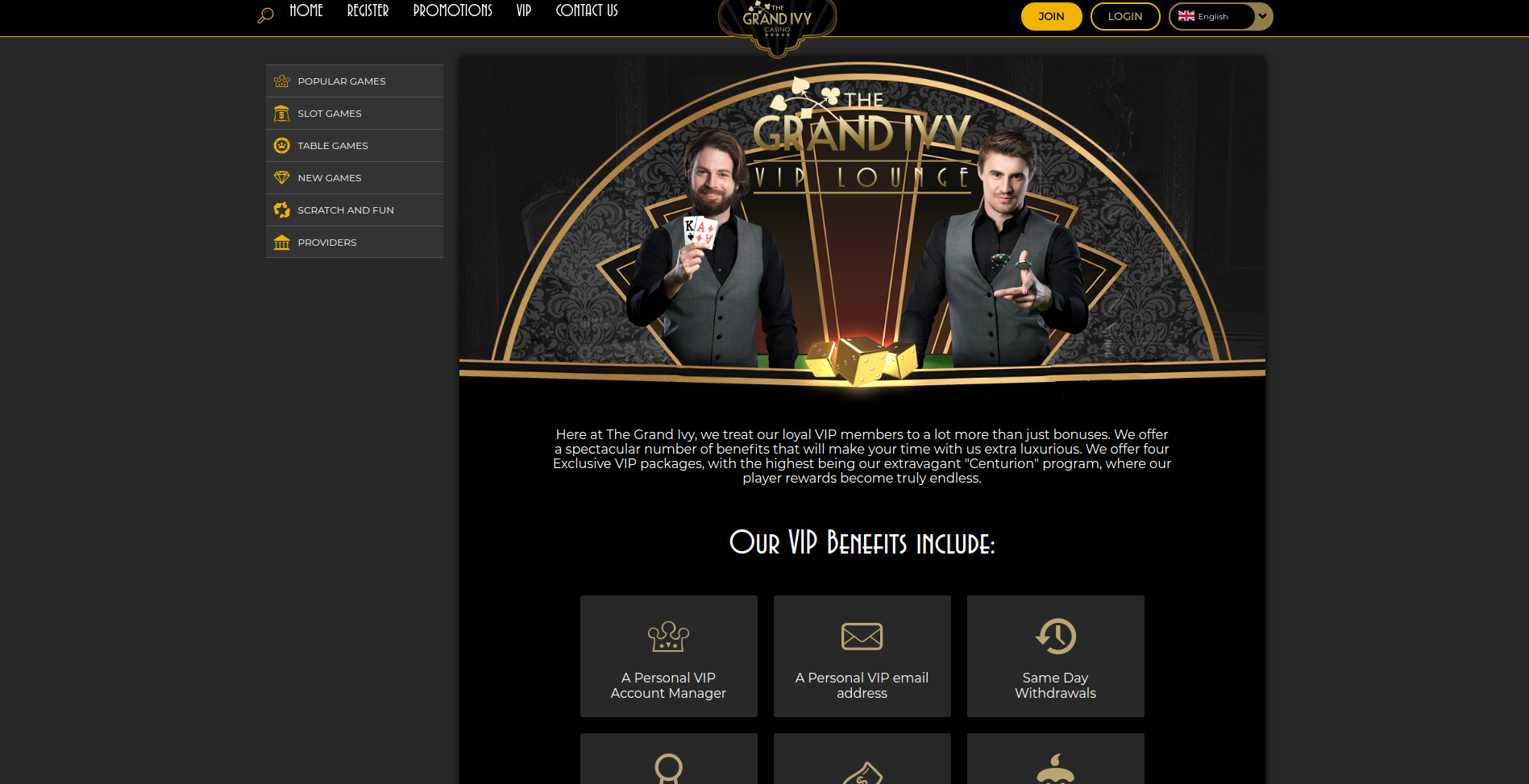 De senaste åren har Grand Ivy Casino blivit känt för sitt unika koncept som bygger på att bryta ny mark i casinovärlden, genom att bjuda på något extra speciellt. Nätcasinot är inte bara bra på att ge bort generösa bonusar men har ständigt nya erbjudanden. Förutom alla härliga bonusar och erbjudanden så är spelplattformen väldesignad och är modern samt enkel att använda. Oavsett om spelaren är oerfaren eller avancerad så finns oändligt många spel anpassade för olika casinospelare. När det kommer till tillgängligheten på mobilcasinot så får Grand Ivy Casino höga poäng då den enkla sökfunktionen är lätt att använda och mycket smidig. Det är lätt att förstå varför många spelare känner sig hemma hos Grandy Ivy Casino, då den inger mycket respekt och är lättåtkomlig.