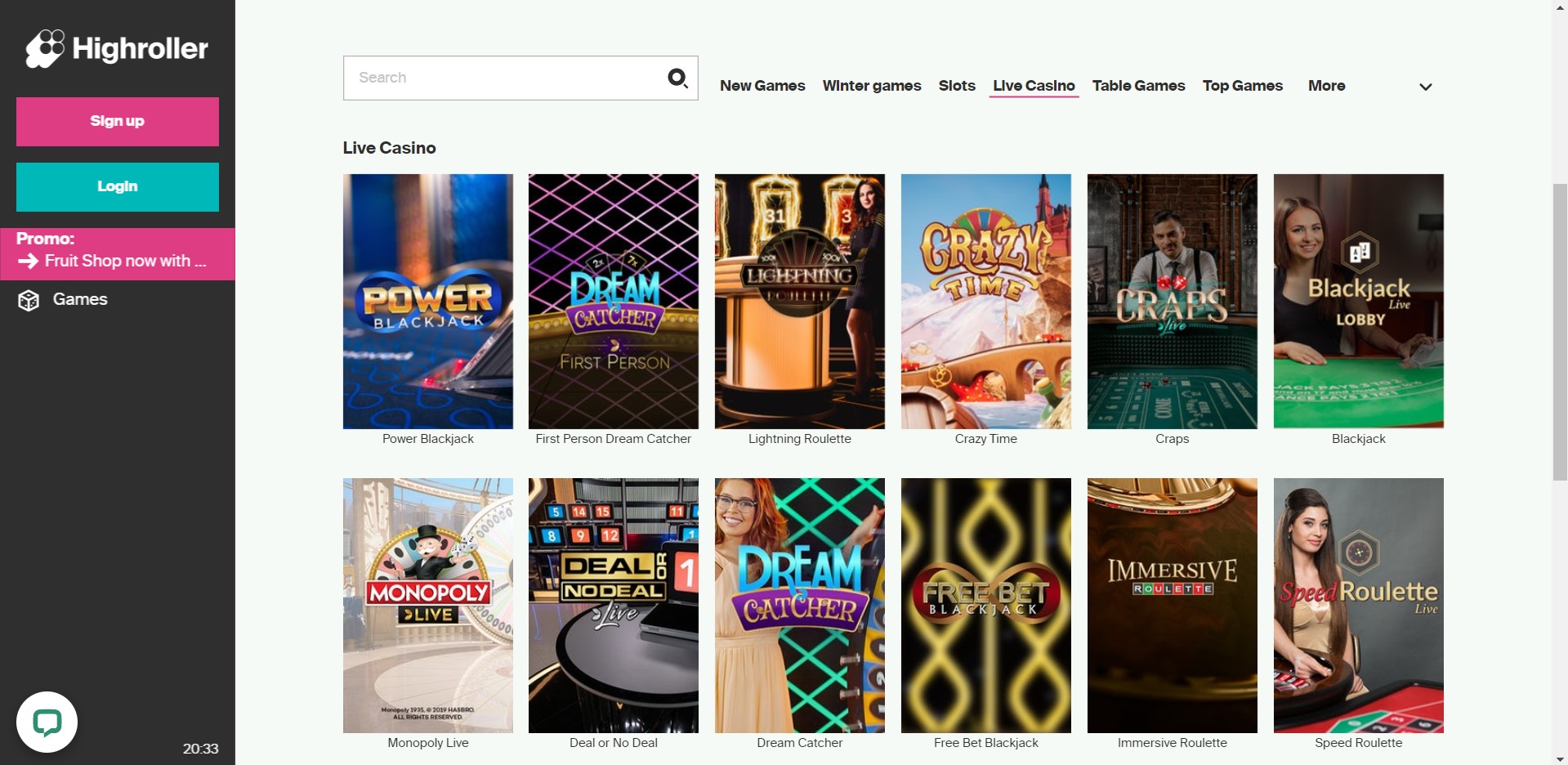 Highroller erbjuder sina spelare över 750 spel, inklusive många av de senaste och mest populära videoslots . Du hittar avsnitt för videospelautomater, bordsspel, videopoker och live kasinospel här.