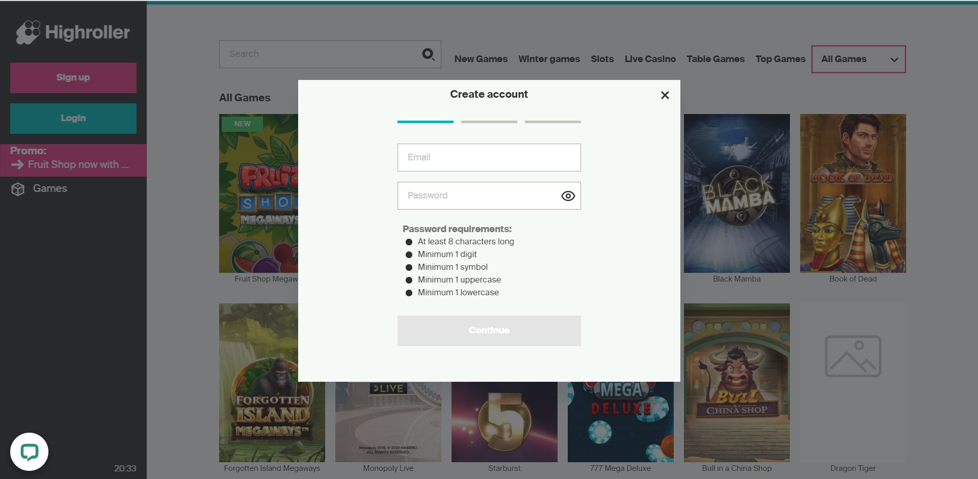 Highroller Casino: Registrering