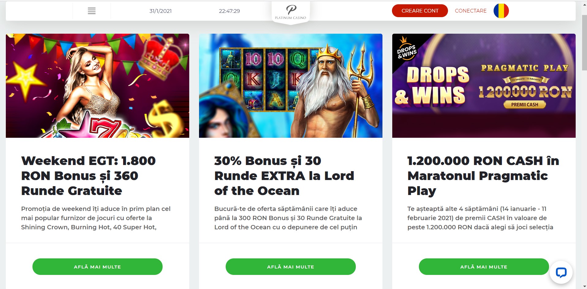 Höghastighet på spel krävs på Platinum Casino eftersom bonusen som företaget lovar löper ut efter 14 dagar. Under denna tid måste du uppfylla satsningskraven (25 gånger med din egen insättning). Till exempel, om du sätter in €20, måste du slutföra en turnering på 25x €40 euro, som motsvarar €1000. Du kan använda vilka spelautomater du vill, men vi rekommenderar inte du inte spelar de klassiska bordsspel, eftersom dina insatser bara räknas till en liten procentsats (10–20%).