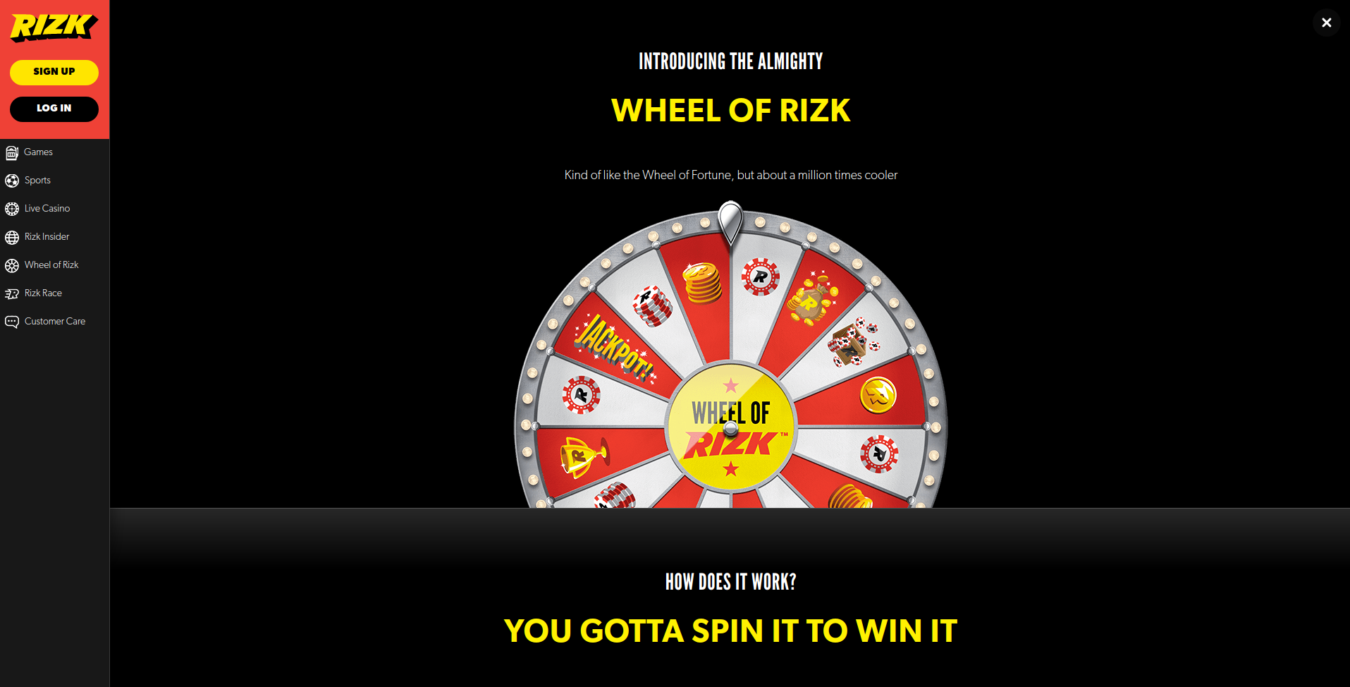 På Rizk Casino leds casinot av Kapten Rizk som är en generös superhjälte som även har ett unikt lojalitetsprogram i form av Wheel of Rizk. Det betyder att spelare vid varje speltillfälle blir belönad av Rizk Casino med olika priser.